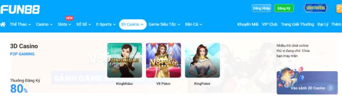Nạp tiền vào tài khoản và truy cập sảnh 3D Casino để lựa chọn trò chơi yêu thích.